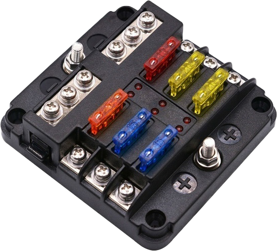 This 6-way fuse box with integrated LED indicators and a built-in negative bus bar provides a smart and efficient solution for safe and organized DC installations.