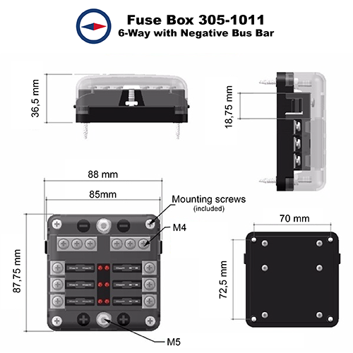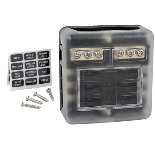 Perfect for both small and large systems, this fuse box accommodates up to six blade fuses, making it ideal for vehicles, boats, and other 12/24 V DC applications where reliable circuit protection and easy troubleshooting are essential.